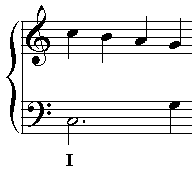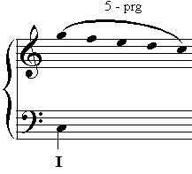 A fourth progression spans the interval of a fourth. The first and last note must be from the chord which it prolongs while the intervening notes fill the space in between them, usually using notes from the scale of the harmony that is being prolonged - in this case C major.